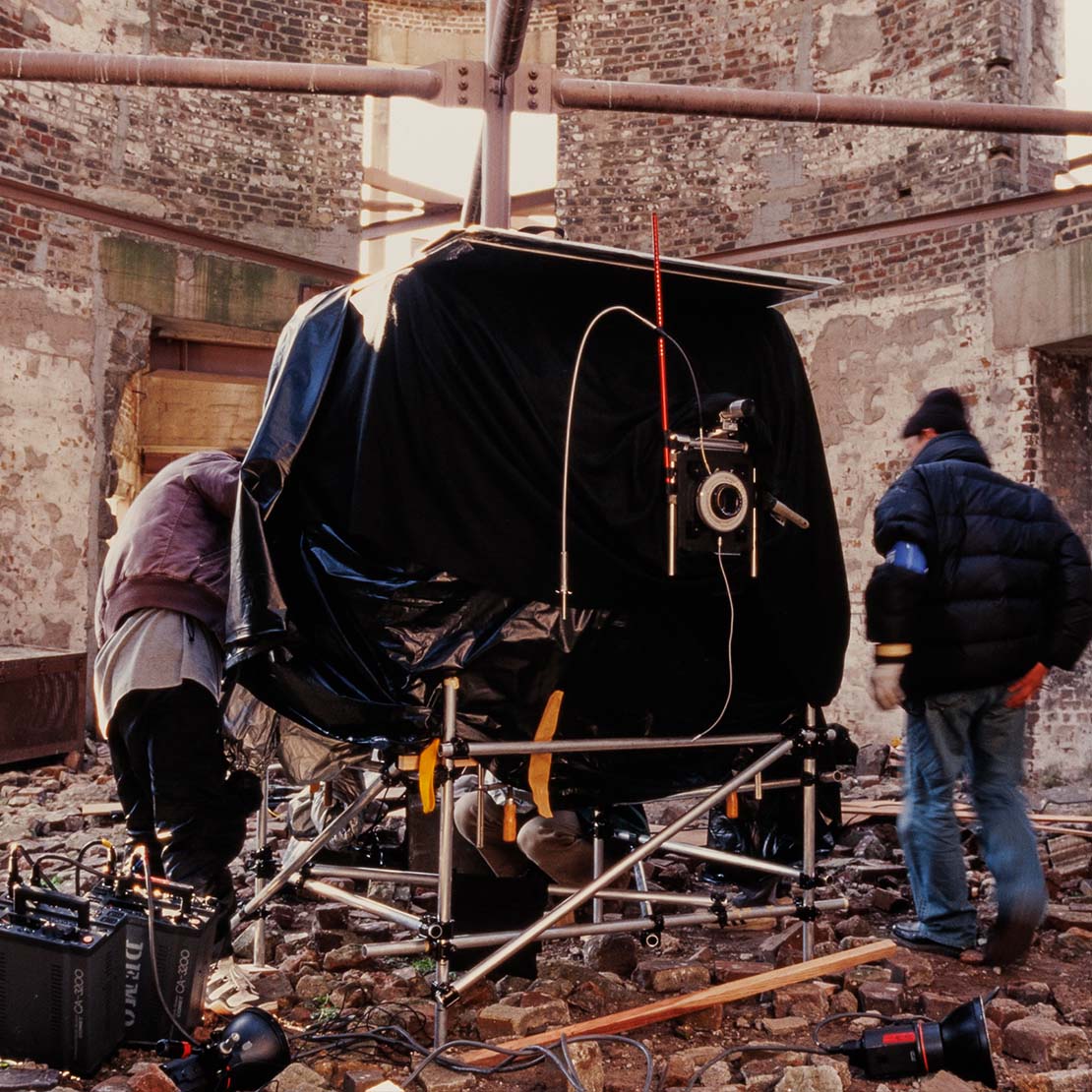 特別な許可を得て原爆ドーム内に設置された40インチフィルムカメラ