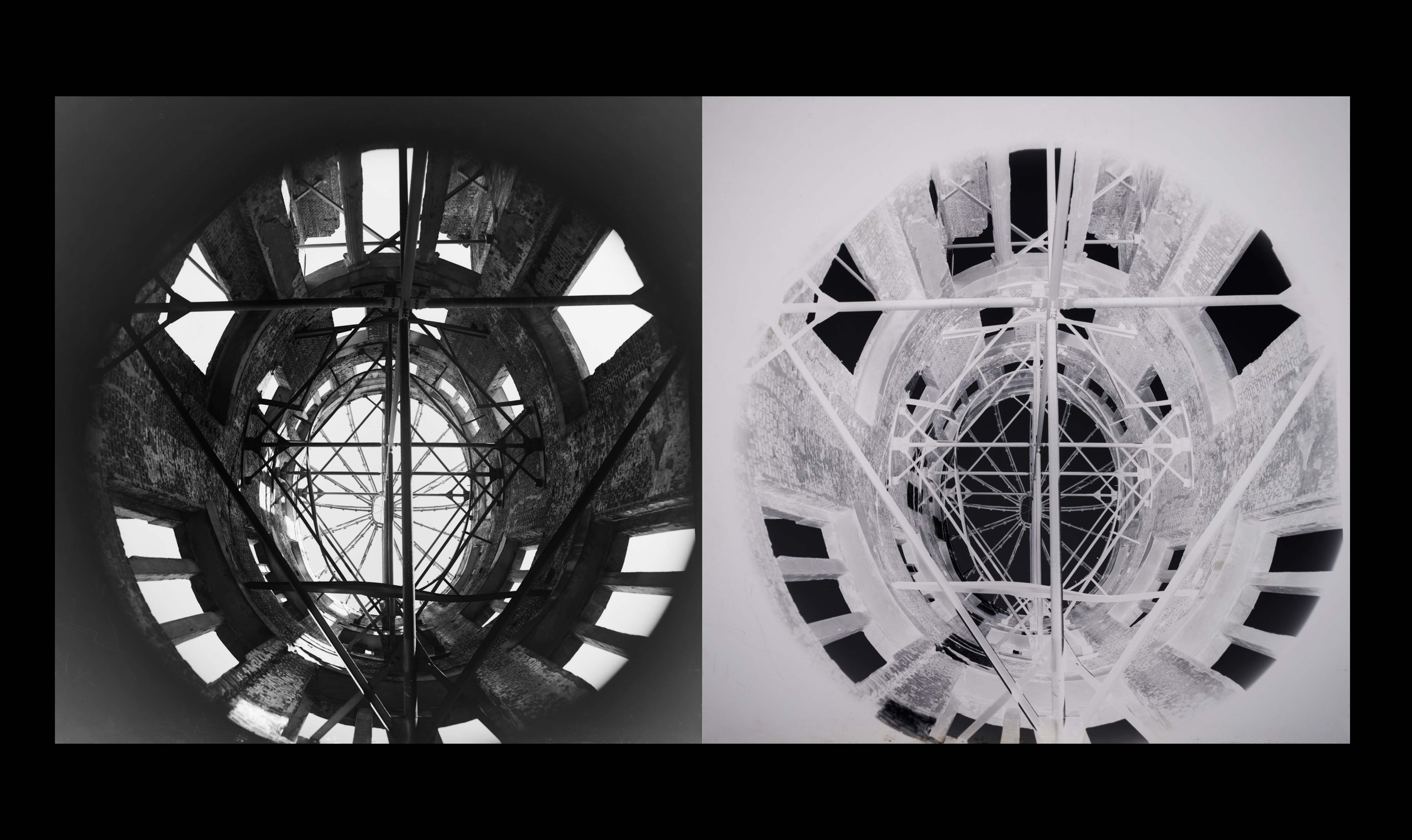 With special permission from the City of Hiroshima, he was granted the rare opportunity to photograph the interior of the Atomic Bomb Dome. The original prints were donated to the Hiroshima Peace Memorial Museum.