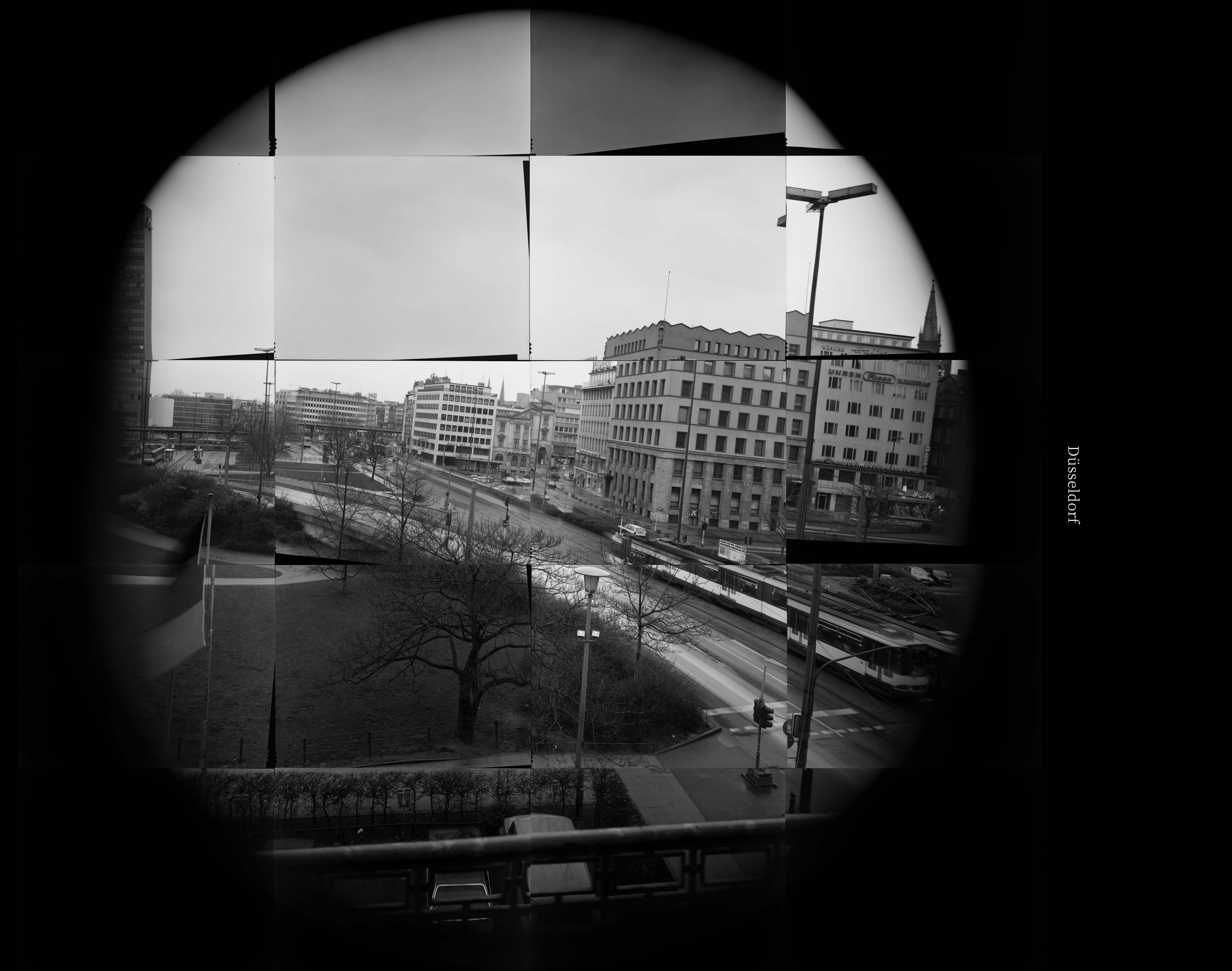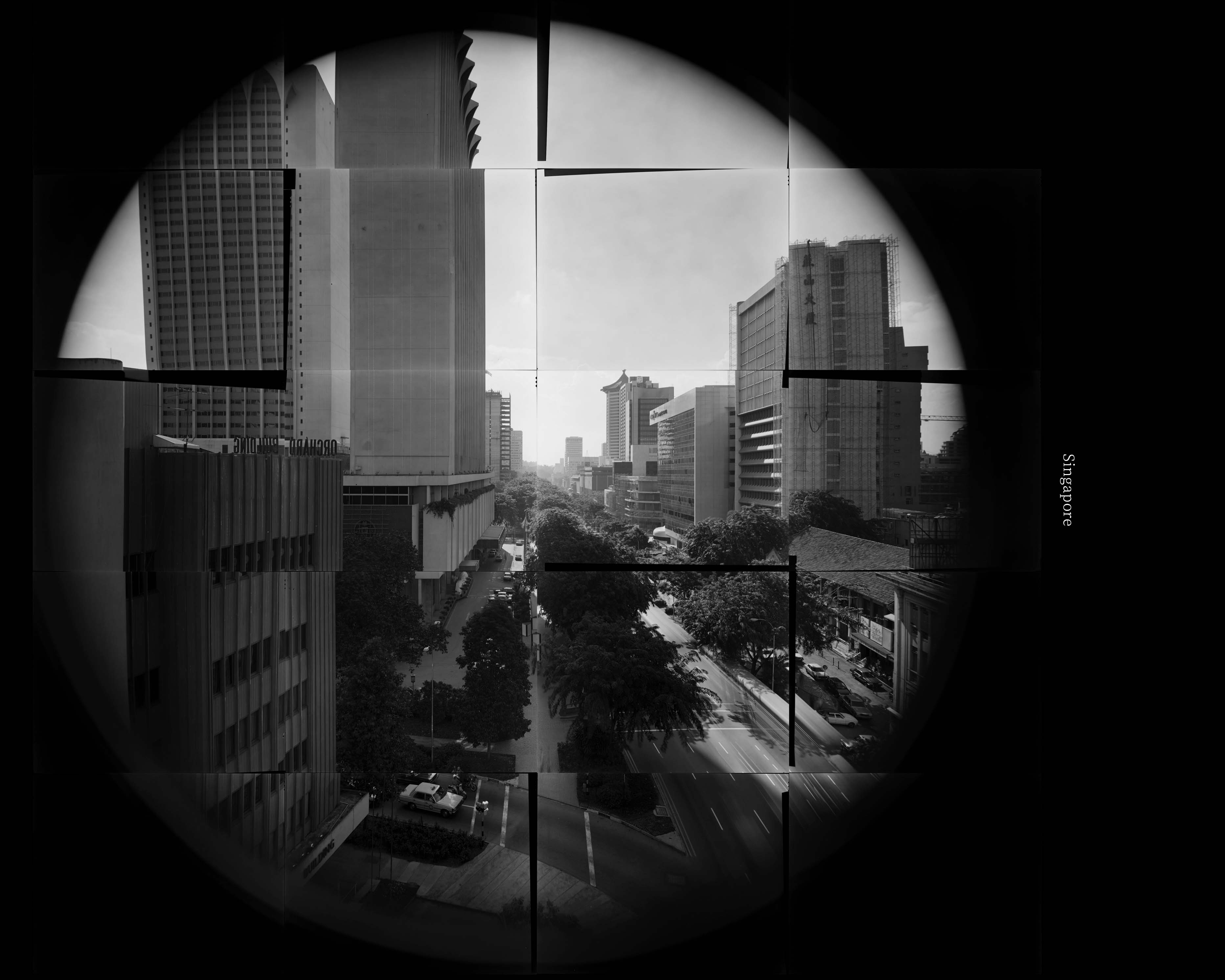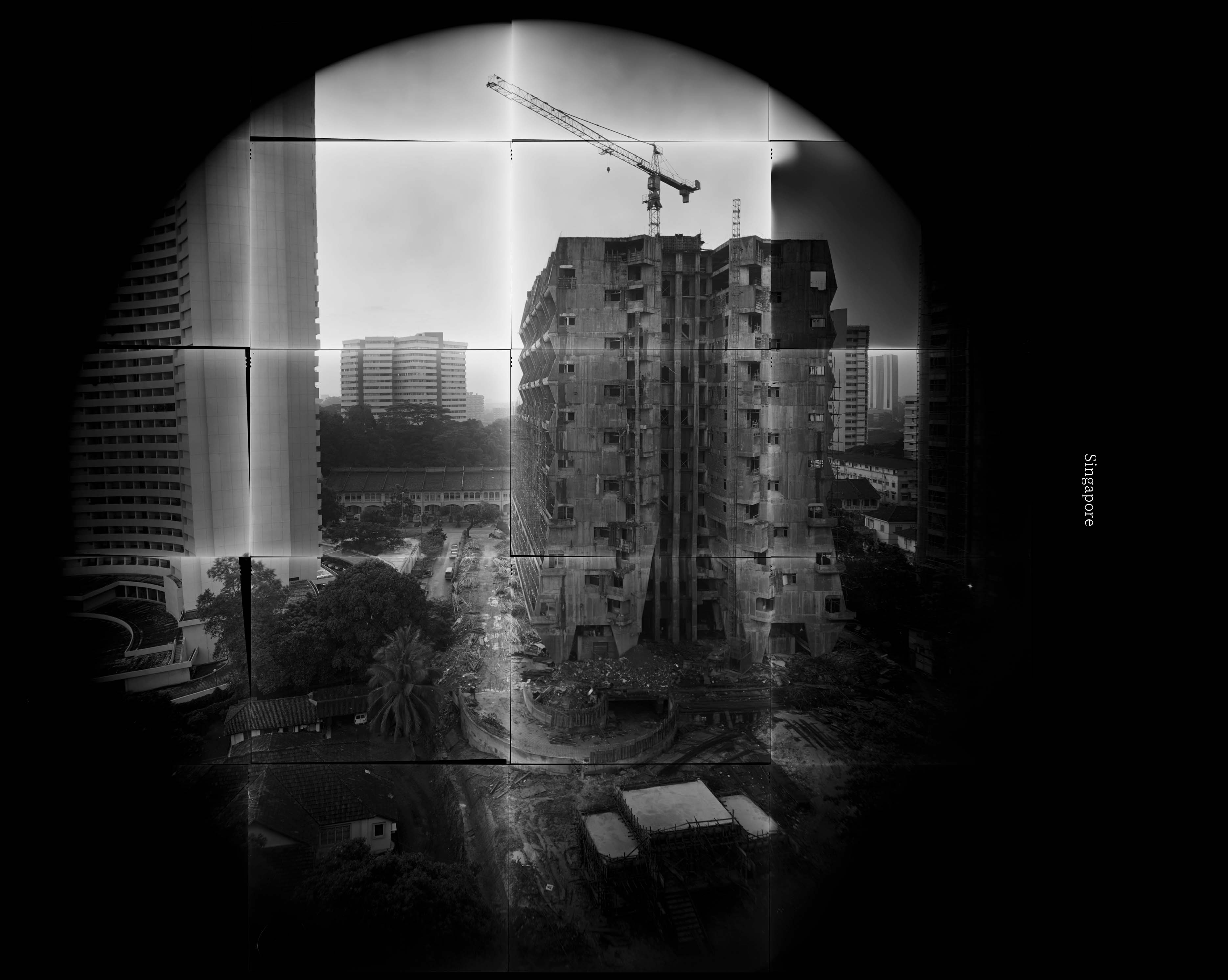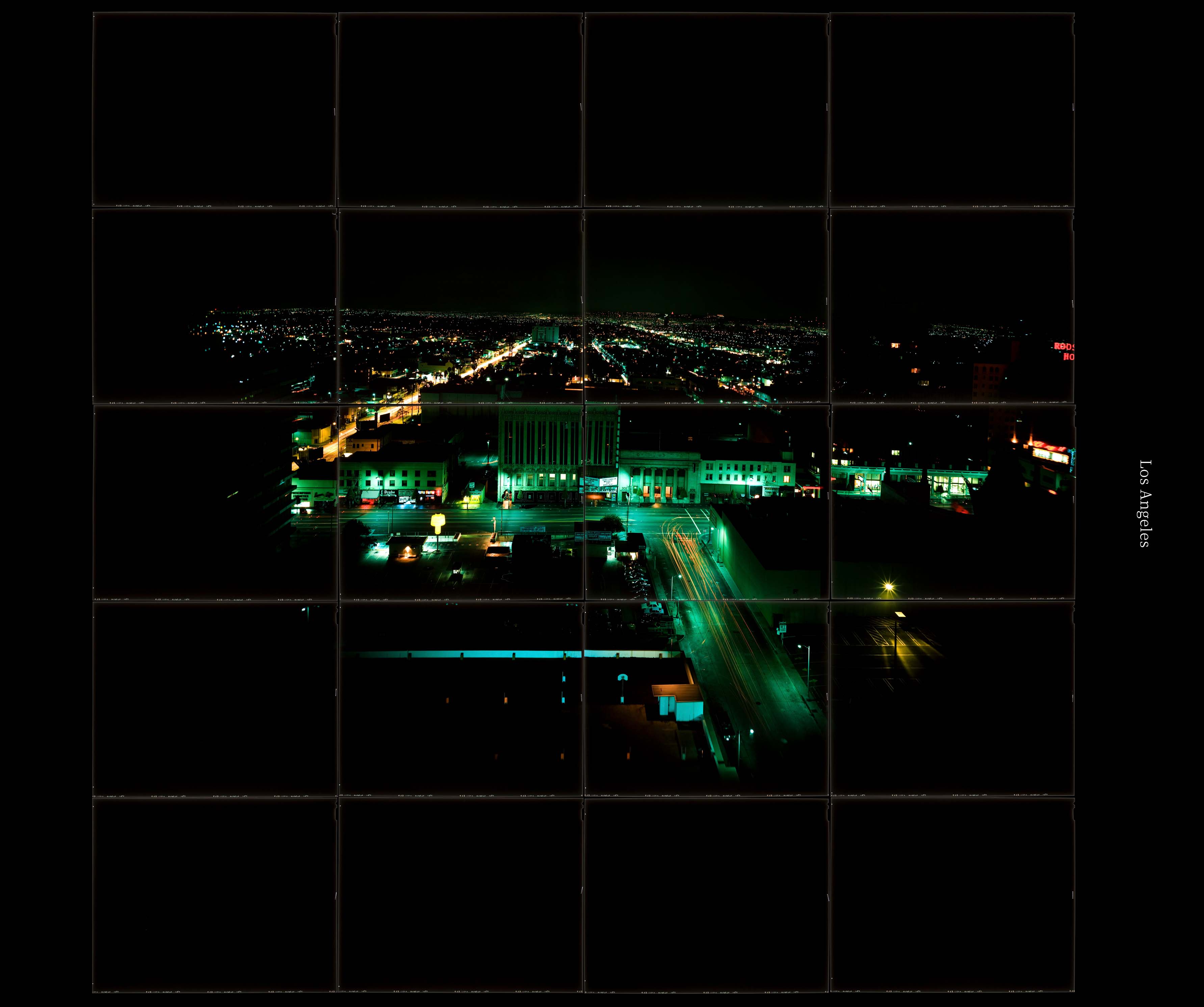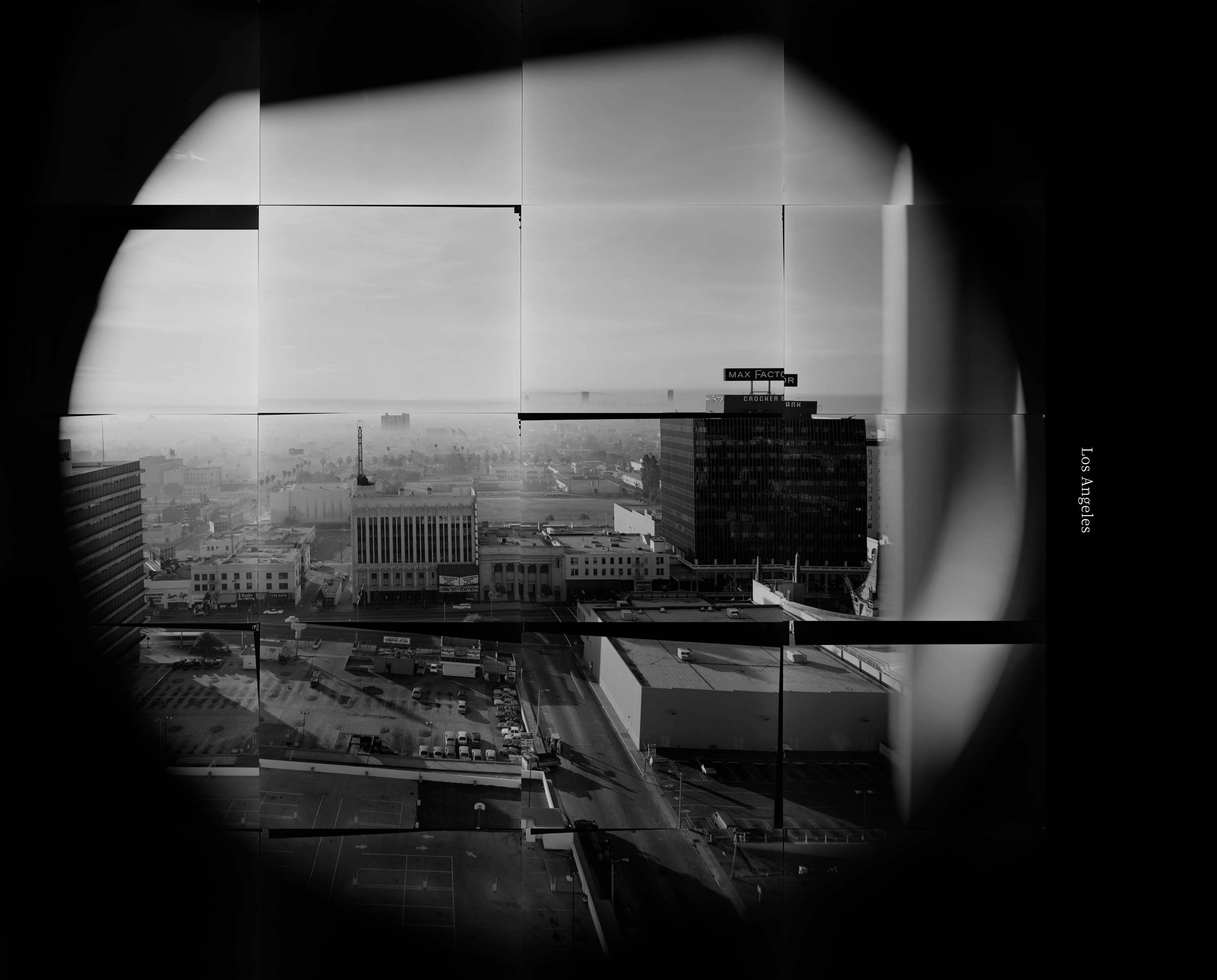 A lens was mounted in the hotel window, transforming the room itself into a camera. The image circle was captured in its entirety as a one-meter-square image, composed of twenty 8×10-inch sheets of film.